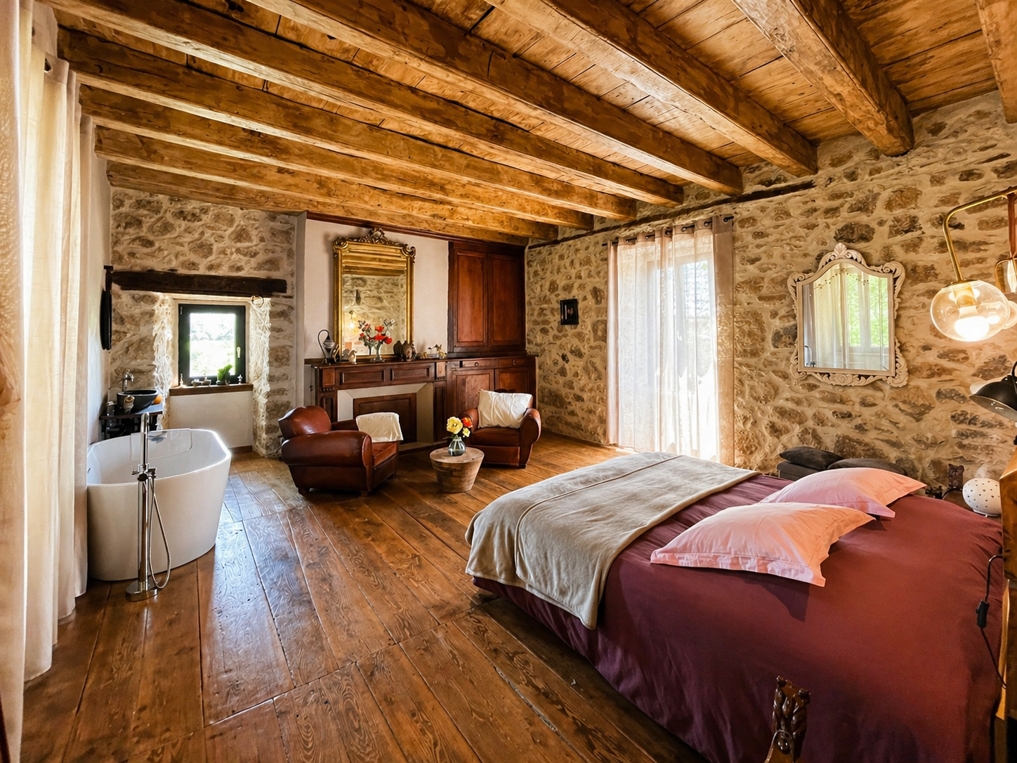 Pour la seconde maison utilisée comme gîte :Belle pièce de vie de plus de 60 m² avec cuisine ouverteChambre avec salle d’eau accessible PMRBuanderieÀ l’étage : 3 chambres dont 2 avec salle d’eauGrand palier avec coin lecture/bureauLe gîte est indépendant et accessible également par la rue, tout en étant relié à la cour intérieure.